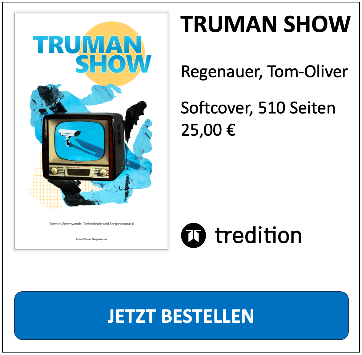 Bestellung: Seit 3. November 2025 ist das Buch überall im Handel erhältlich. Wer das Buch online kaufen möchte, sollte bei tredition bestellen - denn nur dann erhält der Autor die volle Marge. Wer mit den Zahlungsmodalitäten bei tredition Probleme hat, kann "Reportage" natürlich weiterhin bei den Buchkomplizen ordern oder es einfach über die lokale Buchhandlung beziehen. Unterstützen Sie unabhängige Journalisten und Publizisten und sichern Sie sich jetzt ein Exemplar! Es lohnt sich.