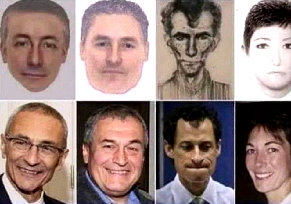 In Anbetracht der Indizienlage wäre es demnach kaum verwunderlich, wenn der Menschenhändler-Ring von Jeffrey Epstein oder der Haiti-Dunstkreis von Ratcliffe- und Clinton-Foundation auch etwas mit dem Fall Maddie zu tun hat – auch wenn die Faktenchecker das kategorisch ausschließen. Denn gerade in Bezug auf die Vorgänge in Praia da Luz gibt es stichhaltige Hinweise, die den Verdacht untermauern, dass John Podesta, Tony Podesta und Anthony Weiner selbst vor Ort waren und Ghislaine Maxwell das Trio unterstützte. Natürlich werden sich diese Namen nicht auf den Passagierlisten herkömmlicher Airlines finden. In diesen Kreisen fliegt man Privatjet. Dafür existieren Phantombilder der britischen und portugiesischen Behörden, deren frappierende Ähnlichkeit zu den genannten Personen nicht von der Hand zu weisen ist. Für sich allein genommen waren die Phantomzeichnungen von Scotland Yard, die basierend auf Zeugenaussagen angefertigt wurden, keine wirkliche Hilfe bei den polizeilichen Ermittlungen vor Ort. Betrachtet man sich jedoch Collagen der Zeichnungen, die selbige mit Fotos der Podestas, von Weiner und Maxwell vergleichen, ist der Effekt erstaunlich. Denn die Bilder wirken wie eigens angefertigte Portraits der vier.